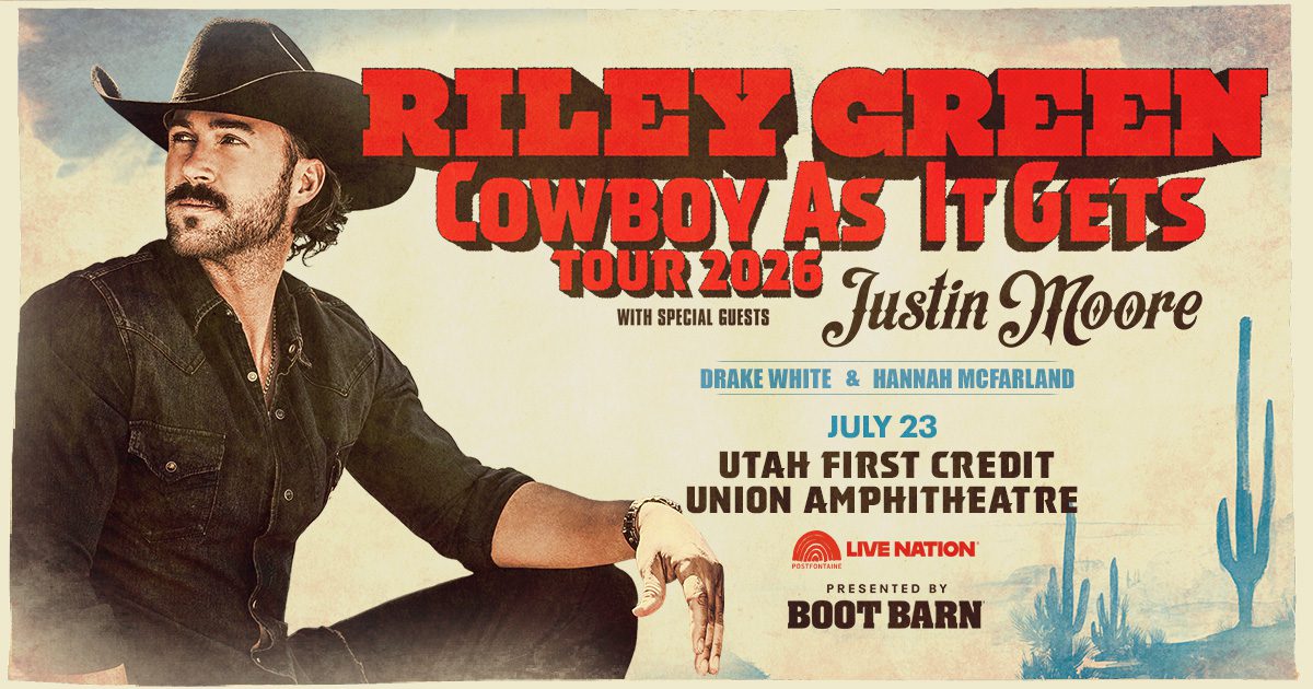HANK FM Welcomes Riley Green July 23rd 2026 at Utah First Credit Union Amphitheatre! Tickets on sale now at LIVENATION.COM!
